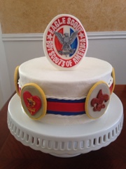Robbie had his Eagle Scout Court on Honor. I offered to make a cake for one of his big upcoming events and he asked me to make this one. I made each Rank Advancement Patch and the Eagle Scout Emblem out of fondant. It took a lot of hand painting and cutting out little details.